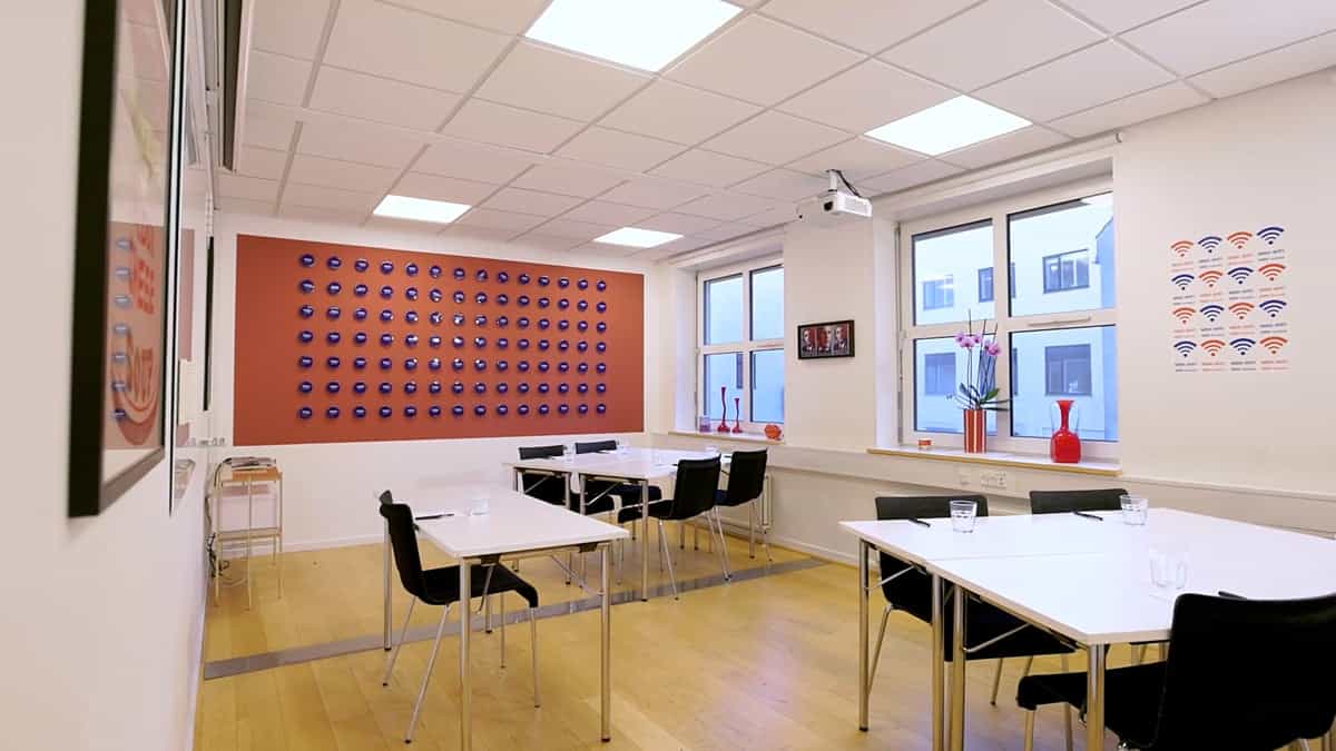 Lokale 10 er vores skønne Pop Art mødelokale med masser af lune og humor. Dog ikke billeder af Andy Warhol med Dronning Margrethe og Marilyn Monroe, men vi har vores eget Pop Art lokale i Roy Lichtenstein stil og vores egen nivea-væg i Andy Warhol stil. I stedet for at bruge amerikanske varer er der brugt tyske niveacreme dåser, som vi alle har et forhold